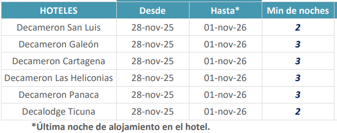 - Aplica el mínimo de noches informado en la tabla inicial.